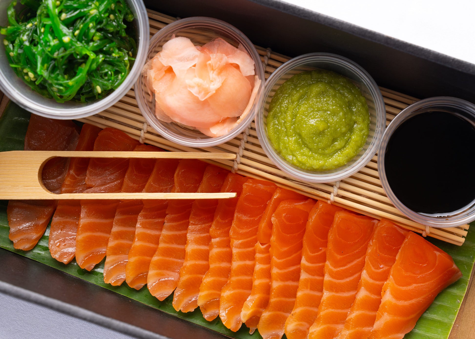 Succulent slices of premium salmon, served with wakame salad, wasabi, pickled ginger and soy sauce.