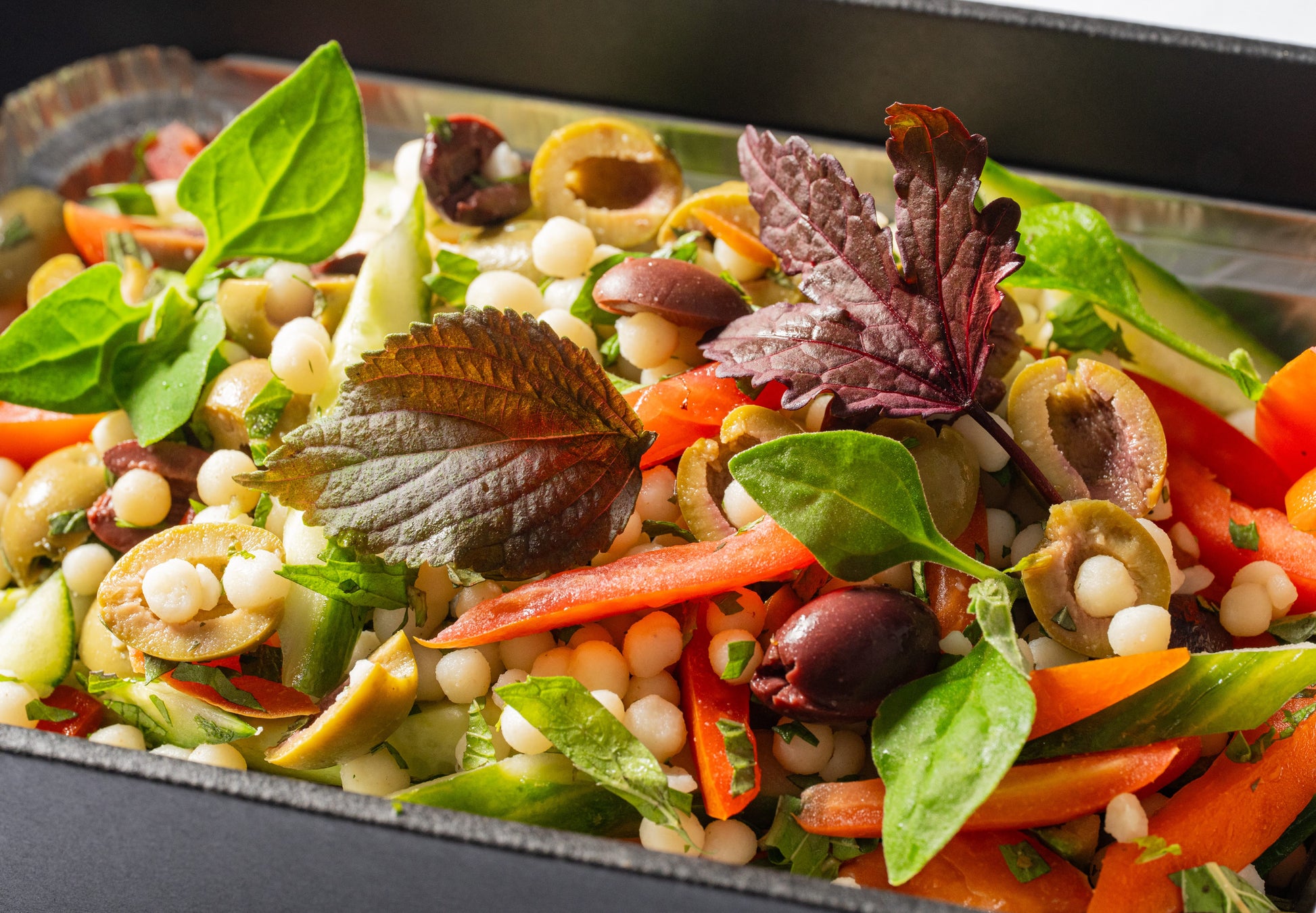 Tomato, cucumber, pearl couscous & Kalamata olives